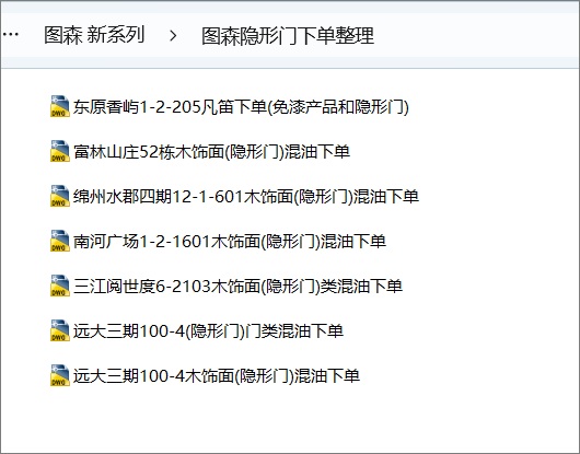 图森隐形门下单整理,文件格式:Dwg,AutoCAD2007软件以上版本可打开