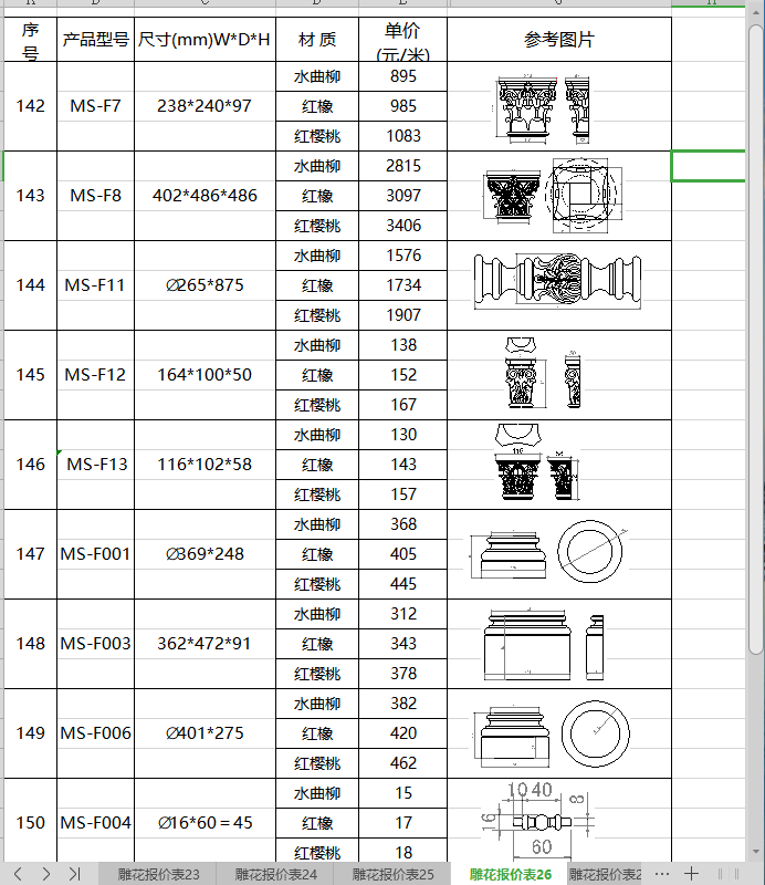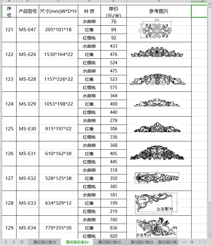 雕花报价表26