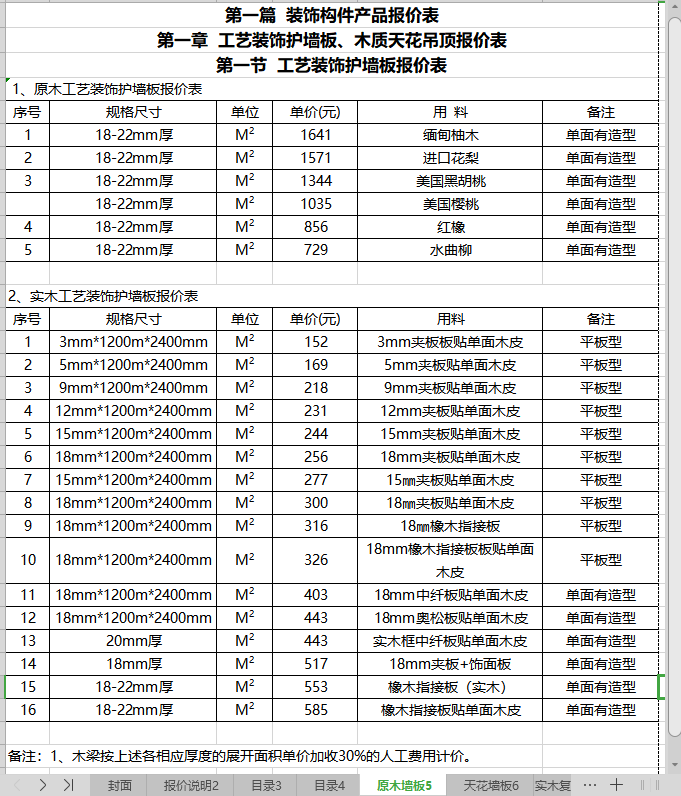 第一节 工艺装饰护墙板报价表 ……………………………………………… 5
