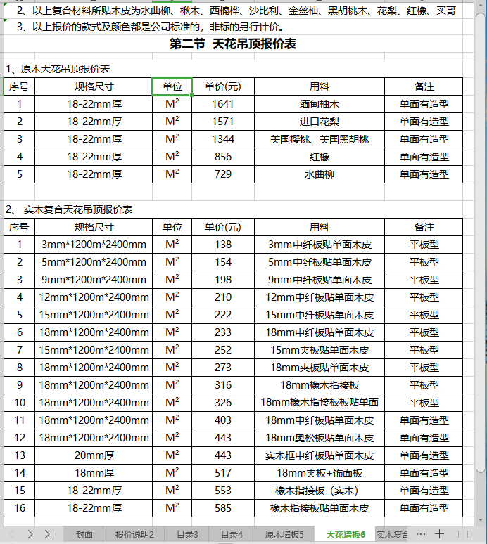 第二节 天花吊顶报价表 ……………………………………………………… 6