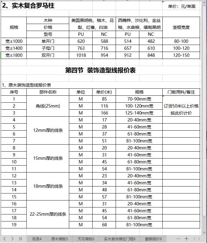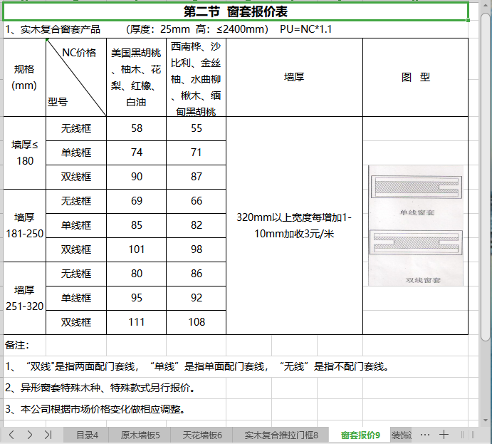 第二节 窗套报价表 …………………………………………………………… 9