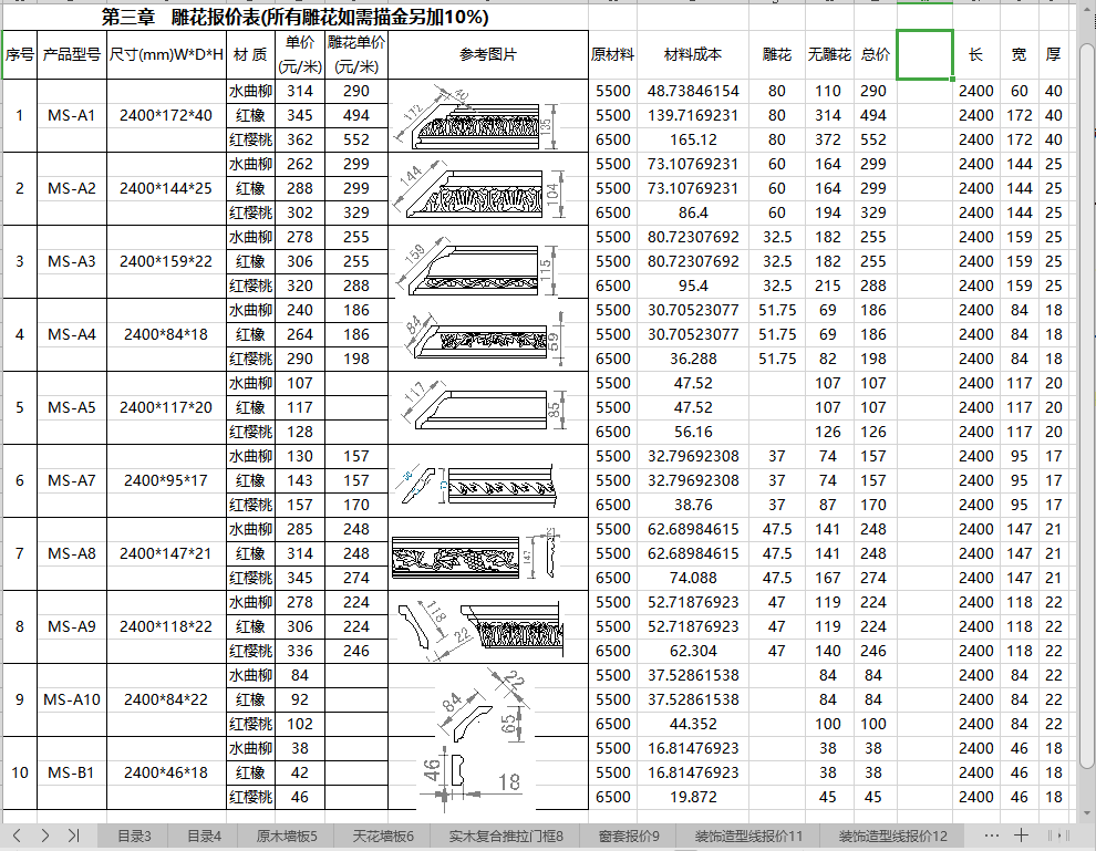 第四节 装饰造型线报价表 …………………………………………………… 11