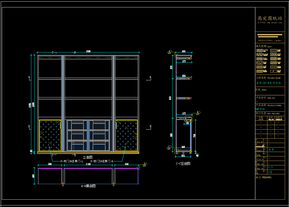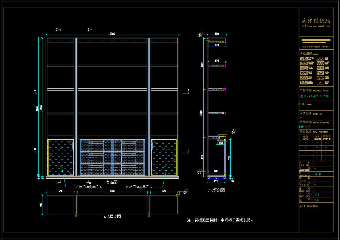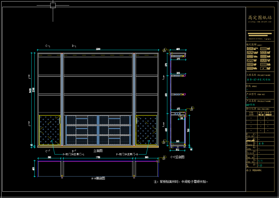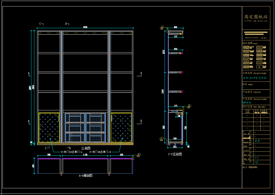 老李(X7)-P系列书柜标准图:1#P书柜 《配套CAD图纸》,文件格式:Dwg,AutoCAD2007软件以上版本可打开