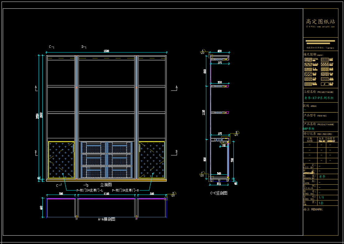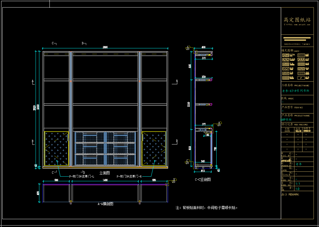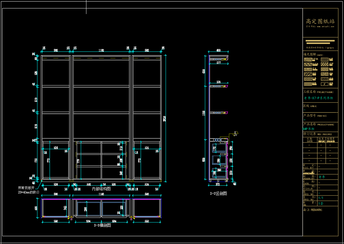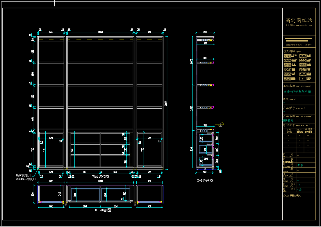 老李(X7)-P系列书柜标准图:1#P书柜 《配套CAD图纸》,文件格式:Dwg,AutoCAD2007软件以上版本可打开