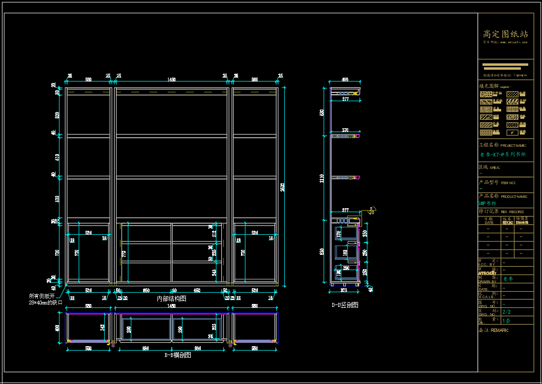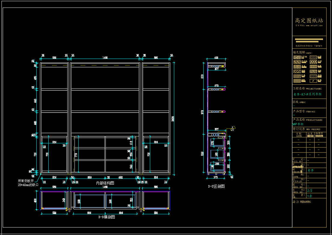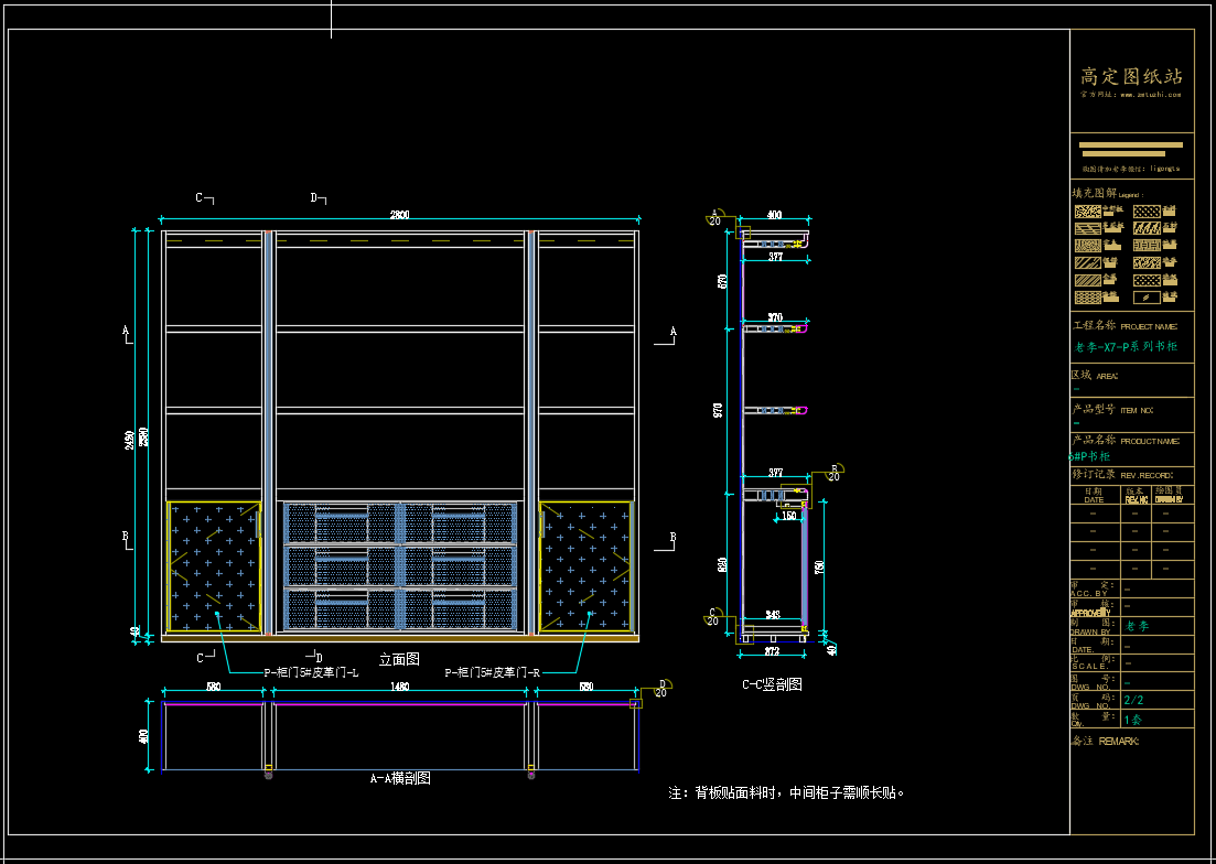 老李(X7)-P系列书柜标准图:2#P书柜《配套CAD图纸》,文件格式:Dwg,AutoCAD2007软件以上版本可打开