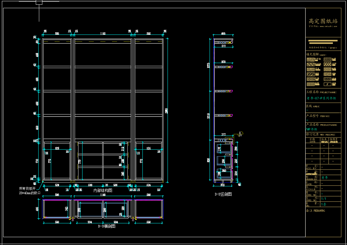 老李(X7)-P系列书柜标准图:《配套CAD图纸》,文件格式:Dwg,AutoCAD2007软件以上版本可打开