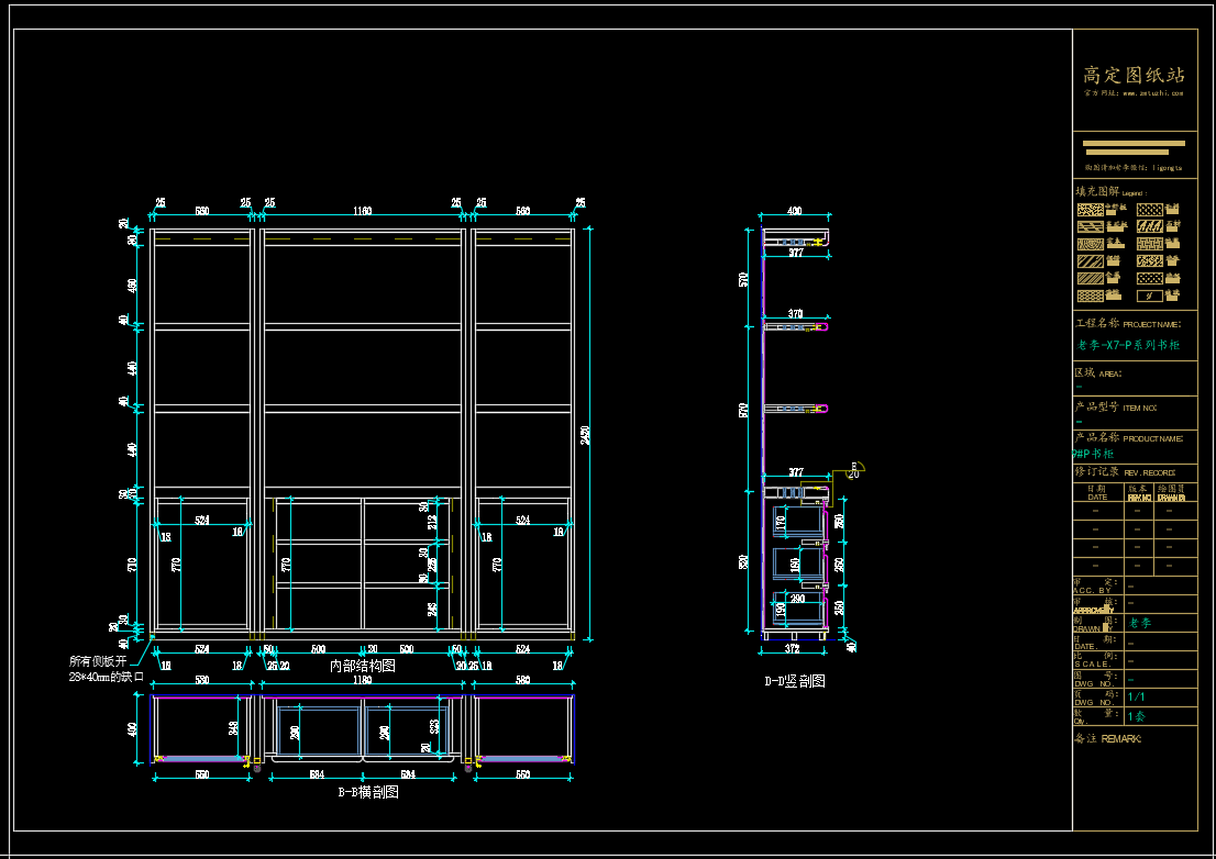 老李(X7)-P系列书柜标准图:7#P书柜《配套CAD图纸》,文件格式:Dwg,AutoCAD2007软件以上版本可打开