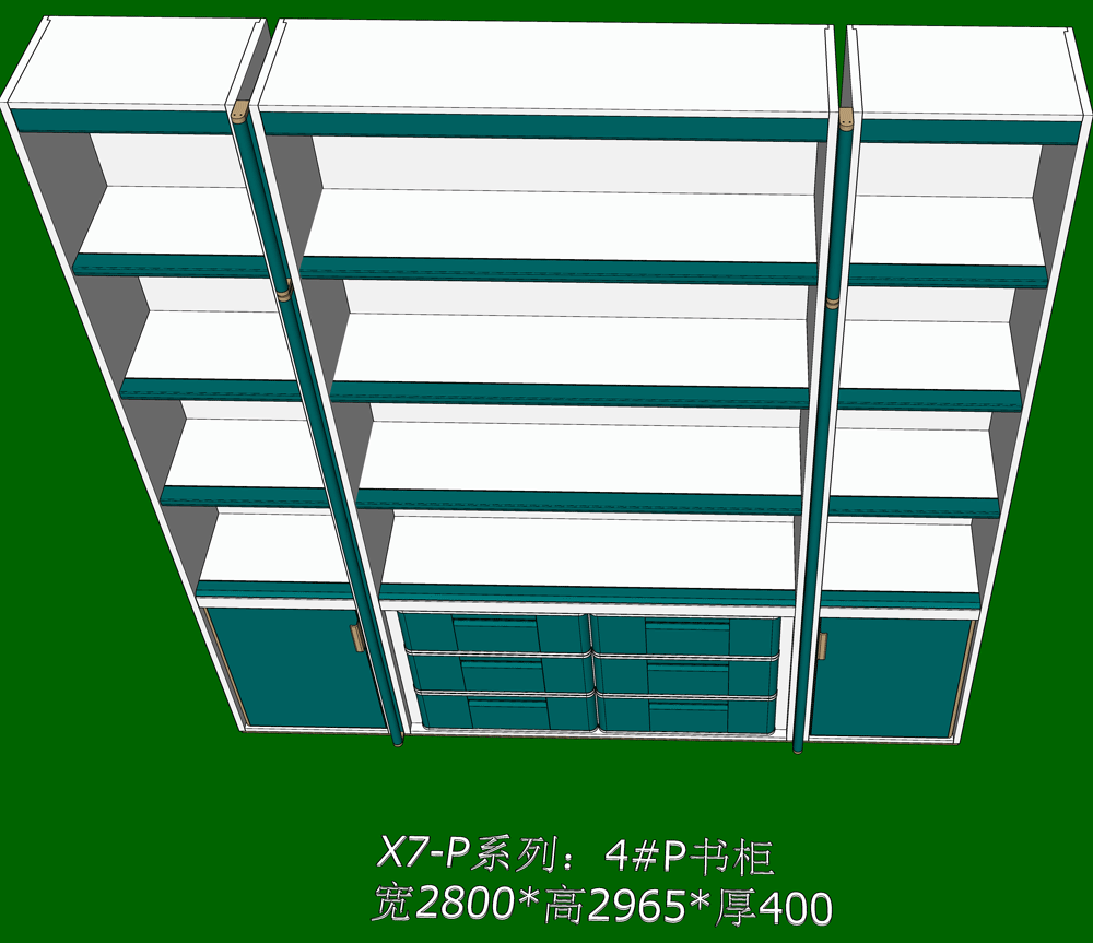 老李(X7)-P系列书柜标准图:4#P书柜 SU模型,文件格式:skp,SketchUp2018软件可打开
