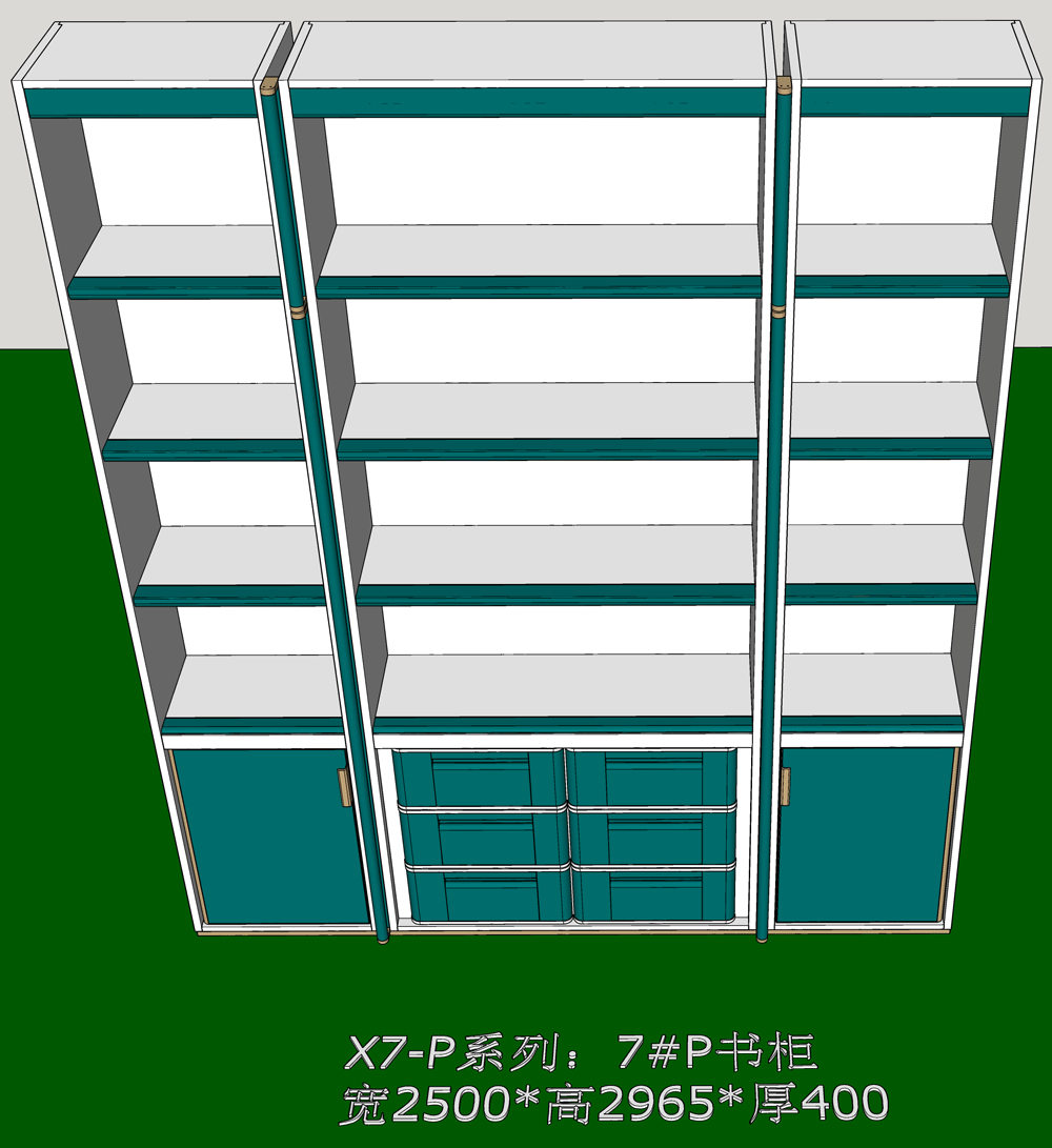老李(X7)-P系列书柜标准图:SU模型,文件格式:skp,SketchUp2018软件可打开