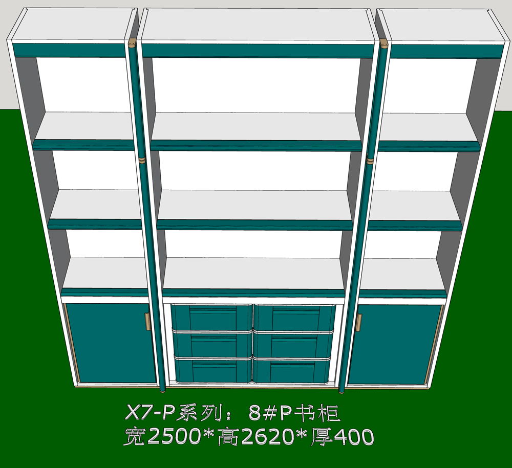 老李(X7)-P系列书柜标准图:8#P书柜 SU模型,文件格式:skp,SketchUp2018软件可打开