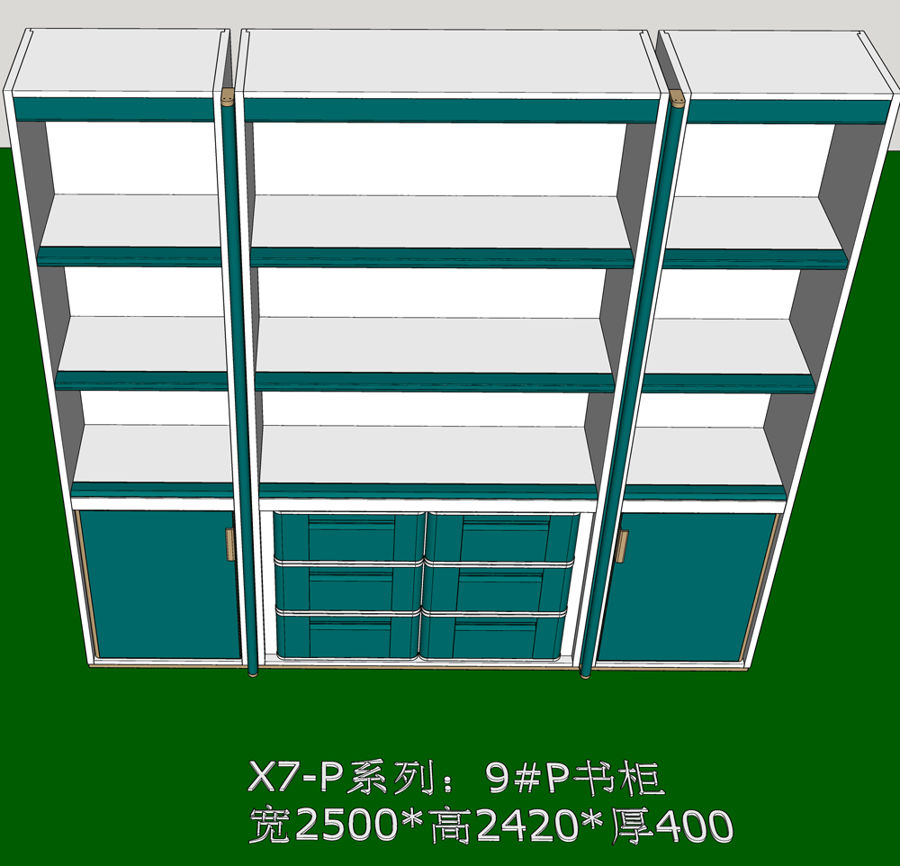 老李(X7)-P系列书柜标准图:9#P书柜 SU模型,文件格式:skp,SketchUp2018软件可打开