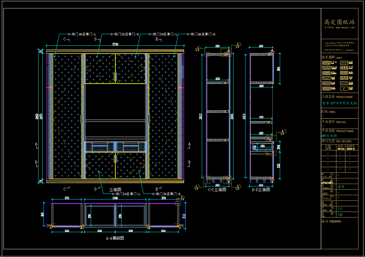 老李(X7)-P系列玄关柜标准图:5#P玄关柜《配套CAD图纸》,文件格式:Dwg,AutoCAD2007软件以上版本可打开