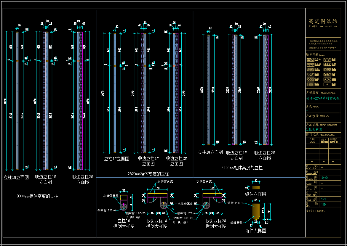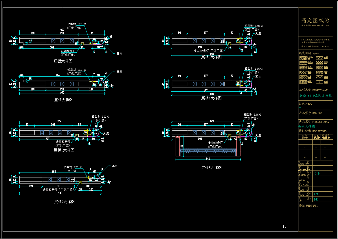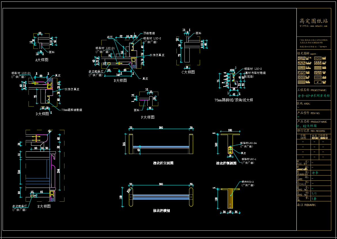 老李(X7)-P系列玄关柜标准图:细节《配套CAD图纸》,文件格式:Dwg,AutoCAD2007软件以上版本可打开