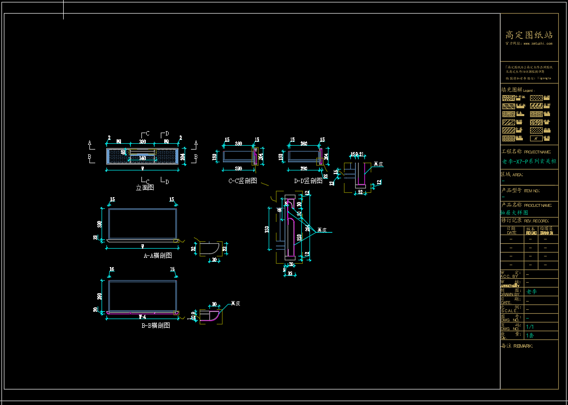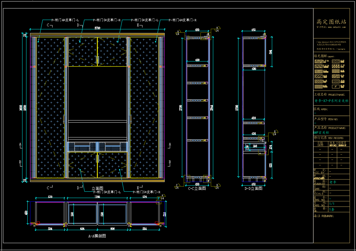 老李(X7)-P系列玄关柜标准图:1#P玄关柜 《配套CAD图纸》,文件格式:Dwg,AutoCAD2007软件以上版本可打开