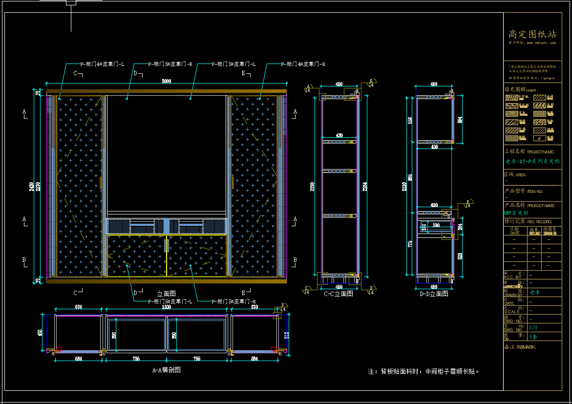 老李(X7)-P系列玄关柜标准图:《配套CAD图纸》,文件格式:Dwg,AutoCAD2007软件以上版本可打开