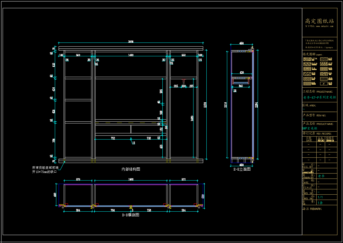 老李(X7)-P系列玄关柜标准图:3#P玄关柜《配套CAD图纸》,文件格式:Dwg,AutoCAD2007软件以上版本可打开