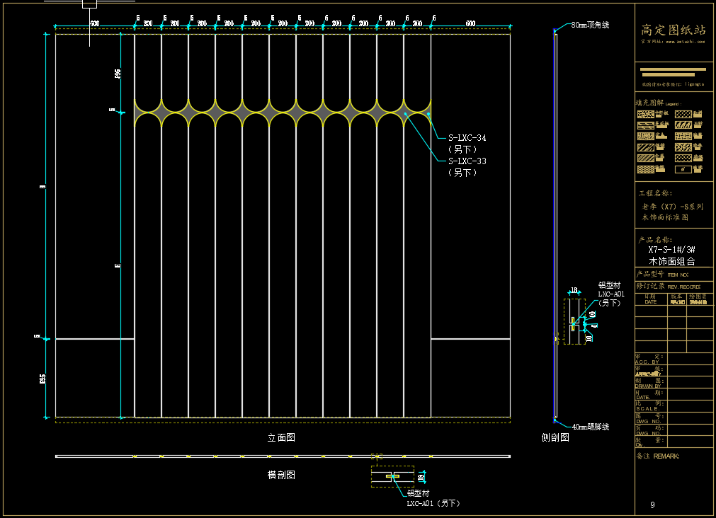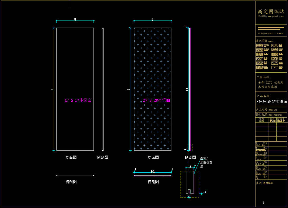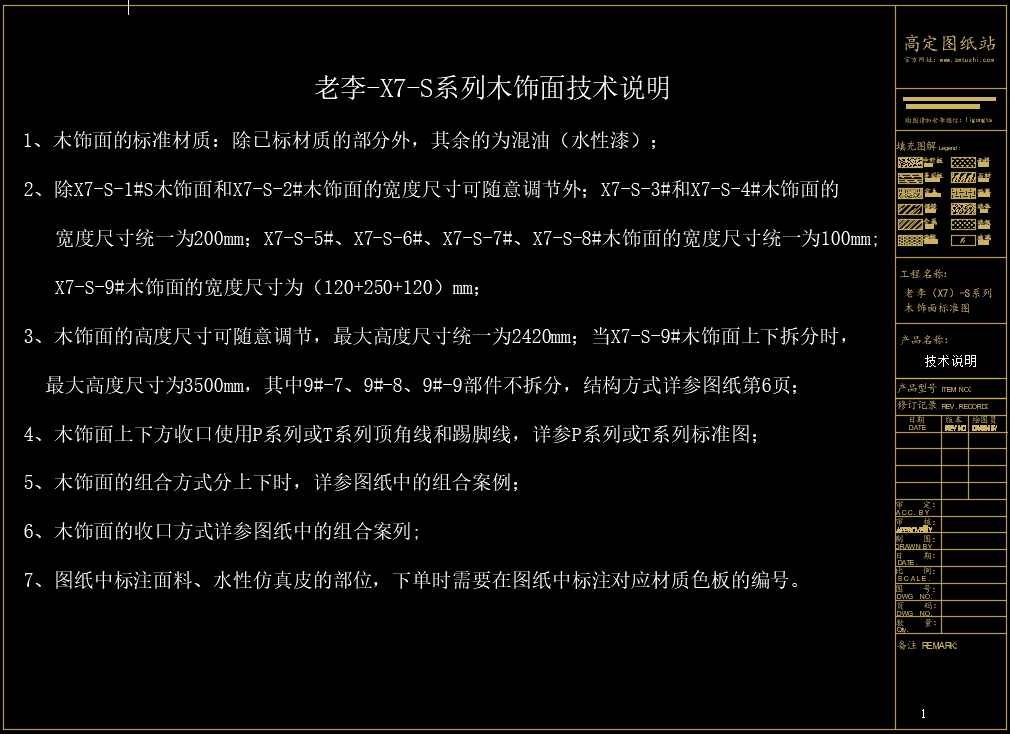 老李(X7)-S系列木饰面标准图:X7-S-1#/2#木饰面《配套CAD图纸》,文件格式:Dwg,AutoCAD2007软件以上版本可打开
