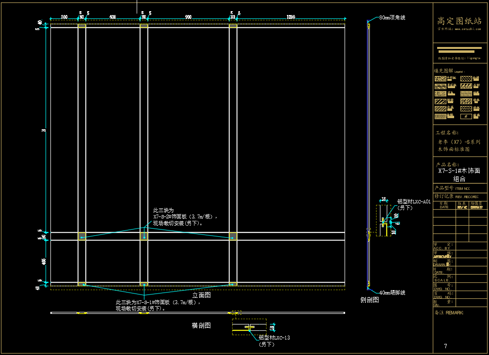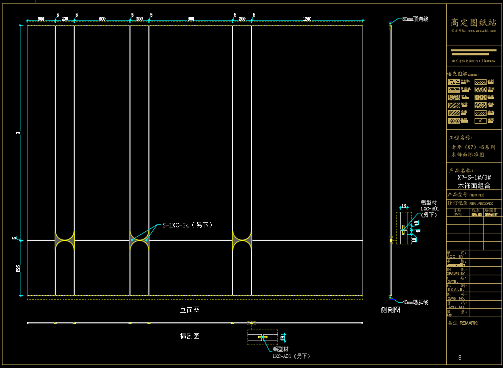 老李(X7)-S系列木饰面标准图:X7-S-3#/4#/5#/6#/7#/8#木饰面《配套CAD图纸》,文件格式:Dwg,AutoCAD2007软件以上版本可打开