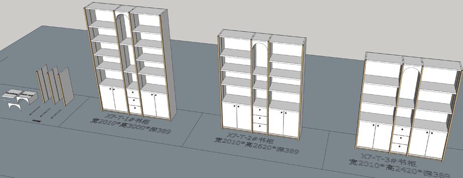 老李(X7)-T系列书柜标准图:SU模型,文件格式:skp,SketchUp2018软件可打开