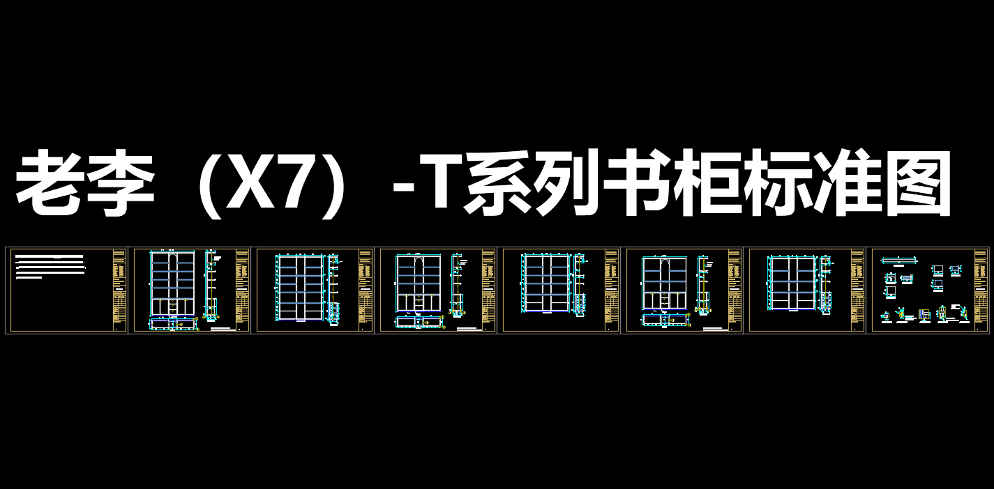 老李(X7)-T系列书柜标准图:《配套CAD图纸》,文件格式:Dwg,AutoCAD2007软件以上版本可打开
