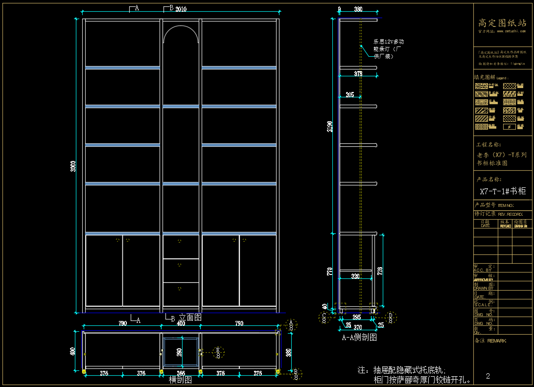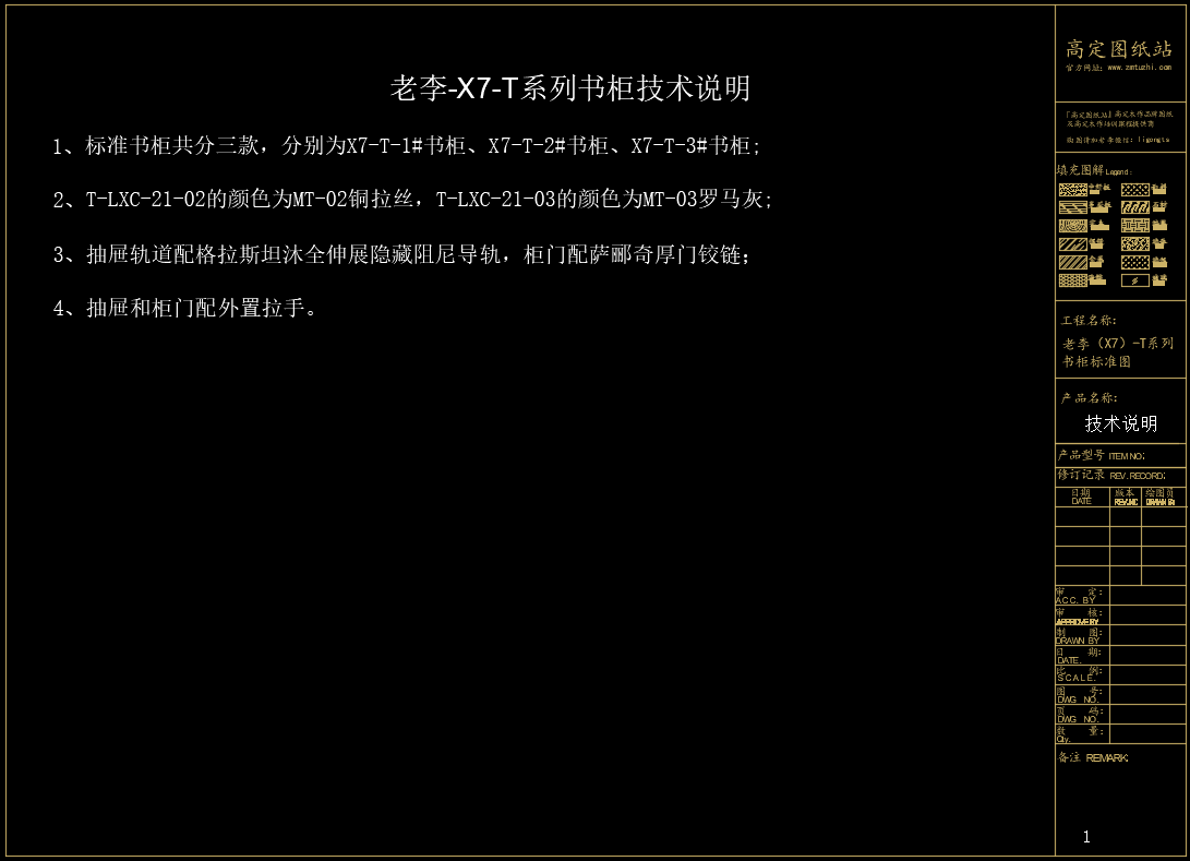 老李(X7)-T系列书柜标准图:X7-T-1#书柜《配套CAD图纸》,文件格式:Dwg,AutoCAD2007软件以上版本可打开