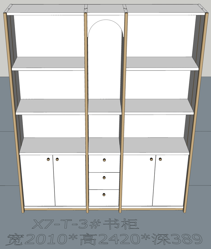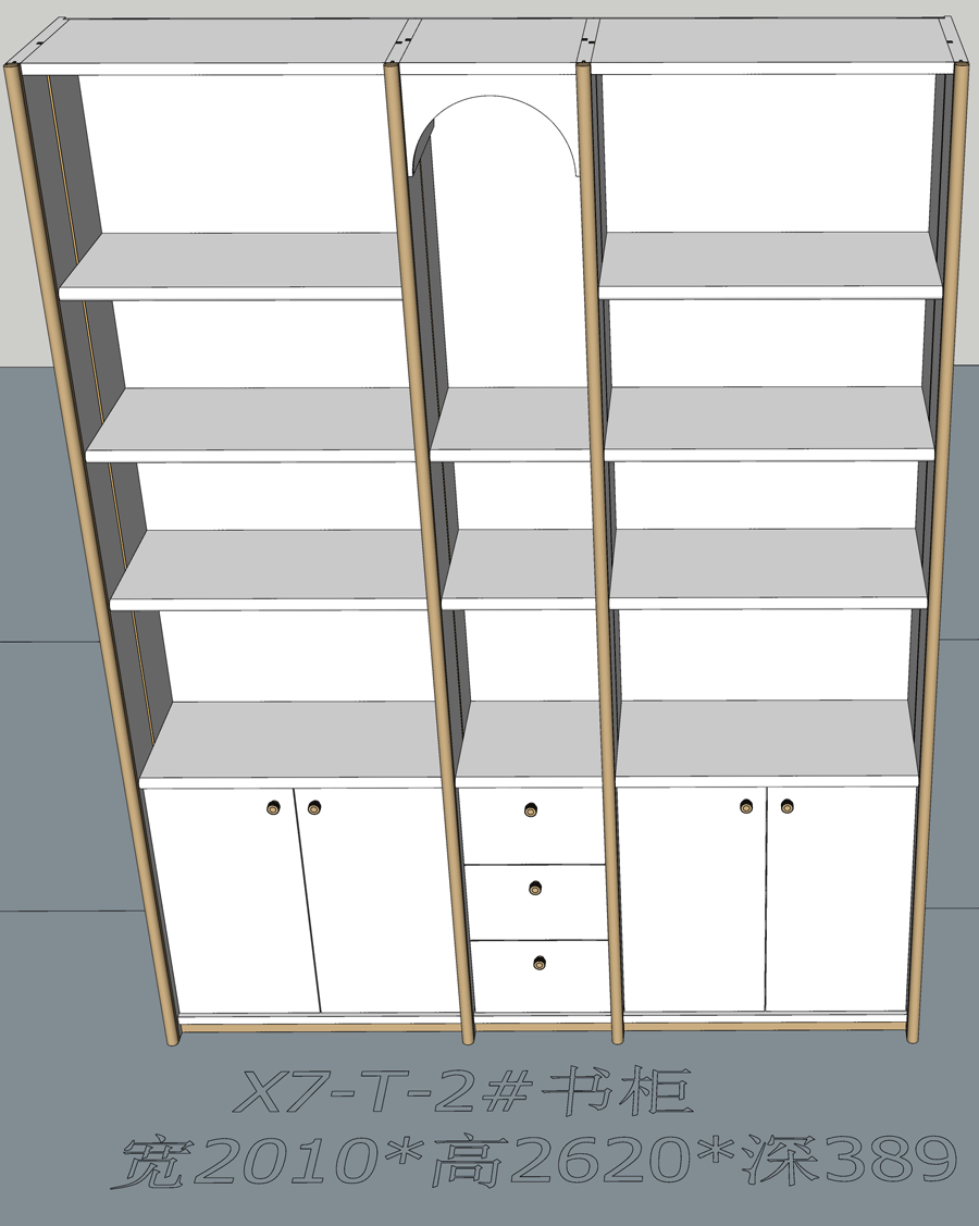 老李(X7)-T系列书柜标准图:X7-T-3#书柜 SU模型,文件格式:skp,SketchUp2018软件可打开