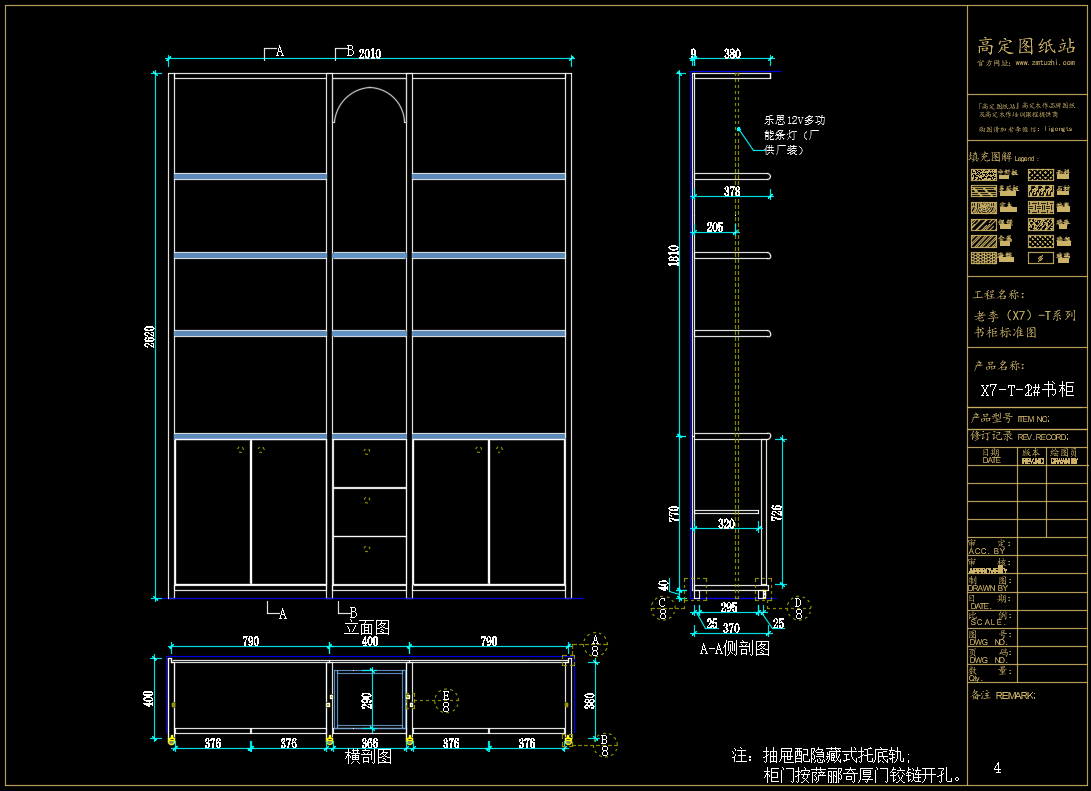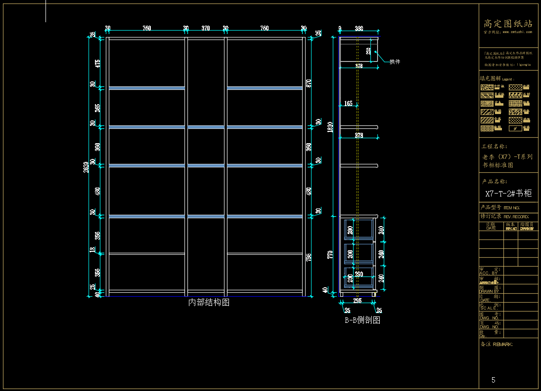 老李(X7)-T系列书柜标准图:X7-T-2#书柜《配套CAD图纸》,文件格式:Dwg,AutoCAD2007软件以上版本可打开