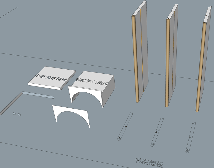 老李(X7)-T系列书柜标准图:节点大样图 SU模型,文件格式:skp,SketchUp2018软件可打开