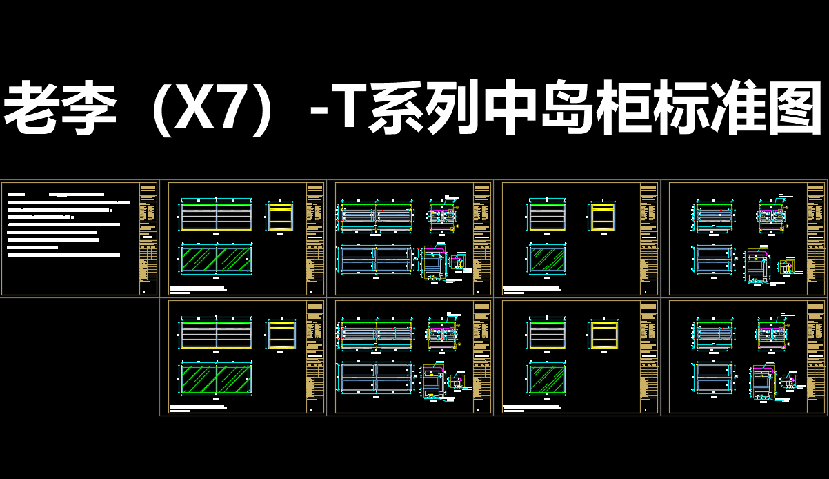 老李(X7)-T系列中岛柜标准图:《配套CAD图纸》,文件格式:Dwg,AutoCAD2007软件以上版本可打开