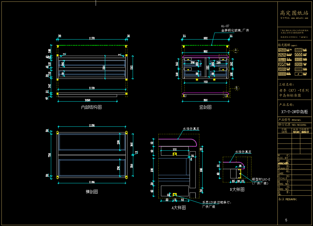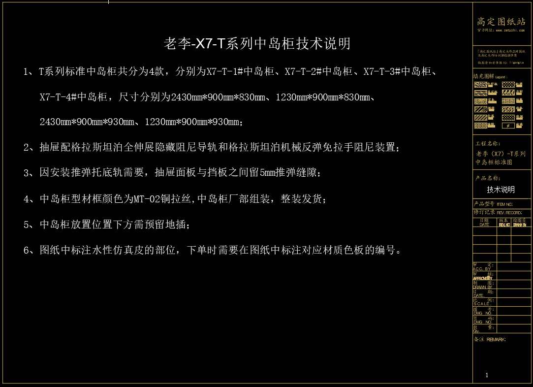 老李(X7)-T系列中岛柜标准图:X7-T-1#中岛柜《配套CAD图纸》,文件格式:Dwg,AutoCAD2007软件以上版本可打开