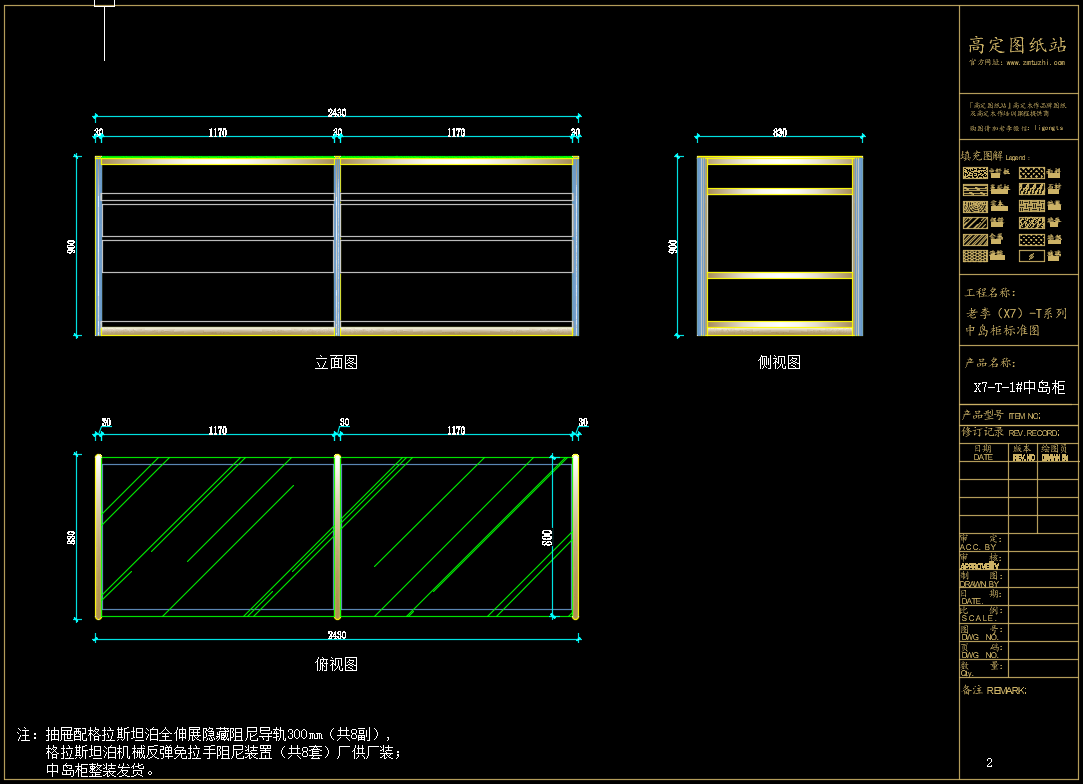 老李(X7)-T系列中岛柜标准图:X7-T-2#中岛柜《配套CAD图纸》,文件格式:Dwg,AutoCAD2007软件以上版本可打开