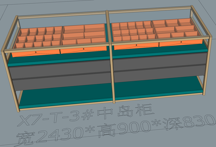 老李(X7)-T系列中岛柜标准图:X7-T-4#中岛柜 SU模型,文件格式:skp,SketchUp2018软件可打开