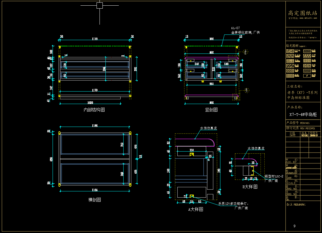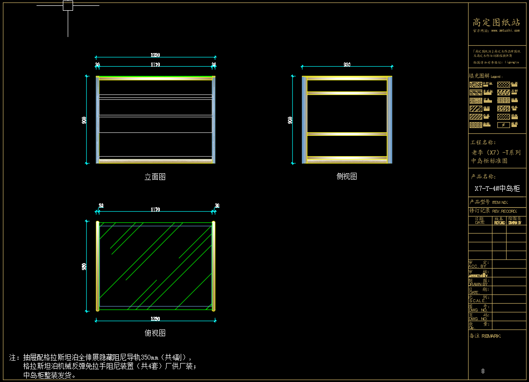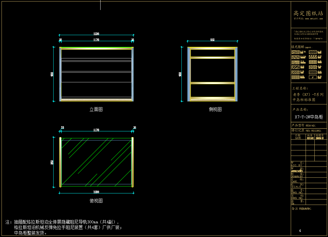 老李(X7)-T系列中岛柜标准图:X7-T-4#中岛柜《配套CAD图纸》,文件格式:Dwg,AutoCAD2007软件以上版本可打开