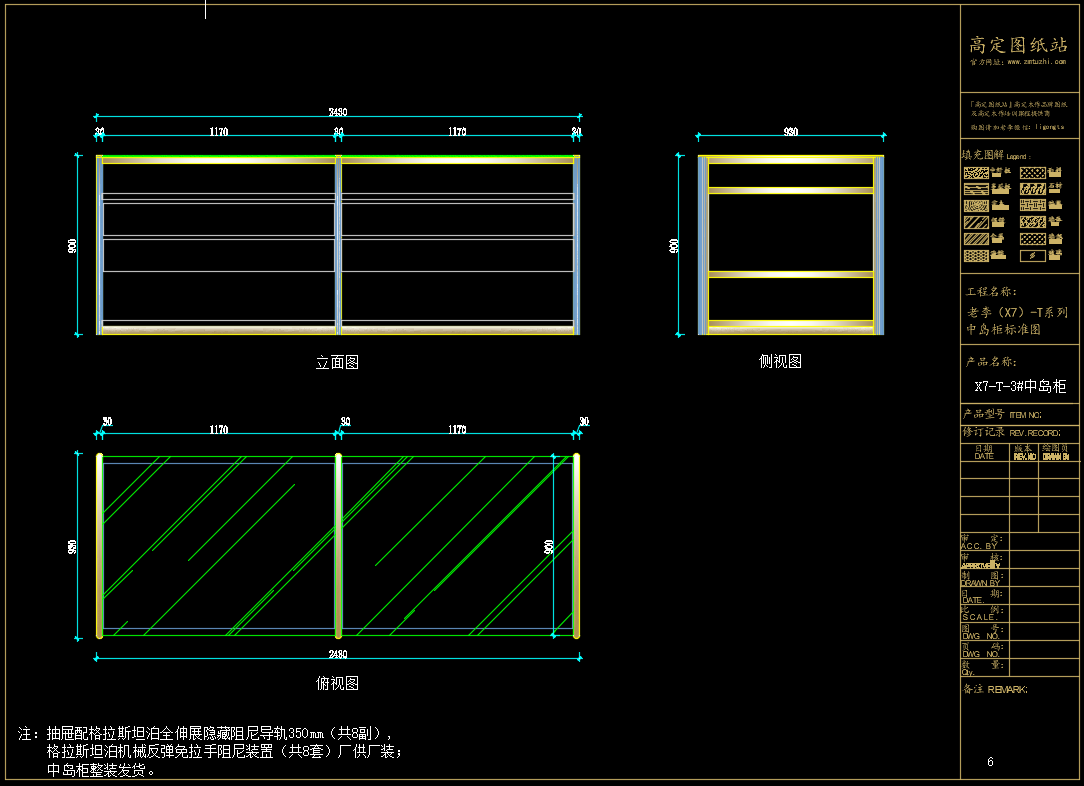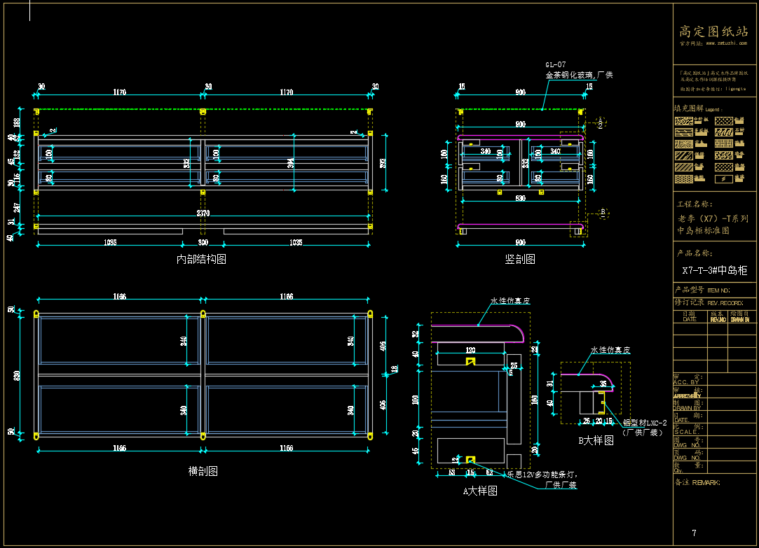 老李(X7)-T系列中岛柜标准图:X7-T-3#中岛柜《配套CAD图纸》,文件格式:Dwg,AutoCAD2007软件以上版本可打开