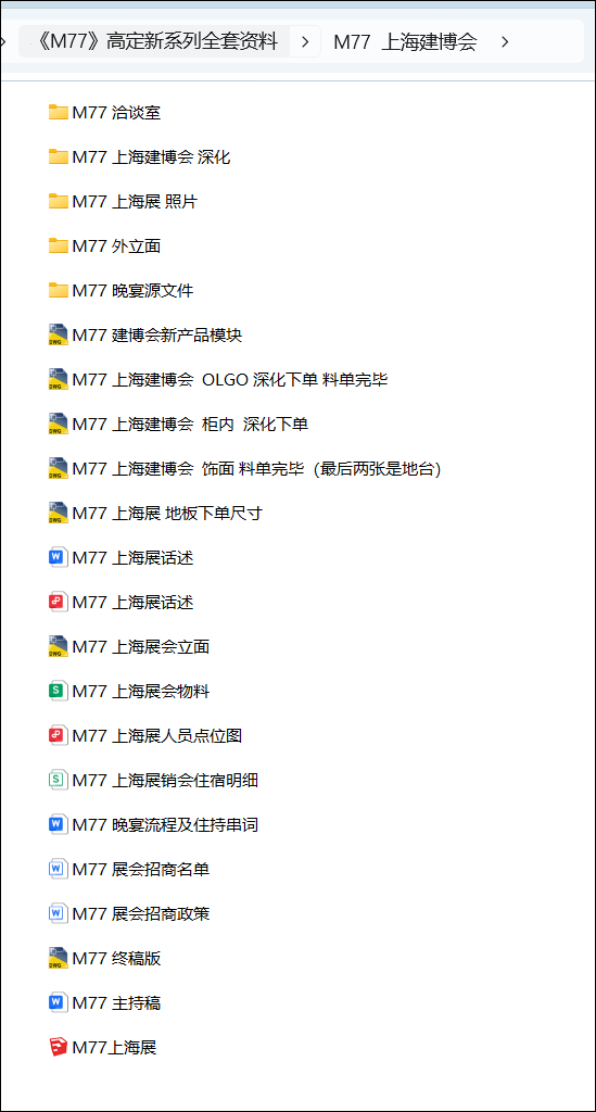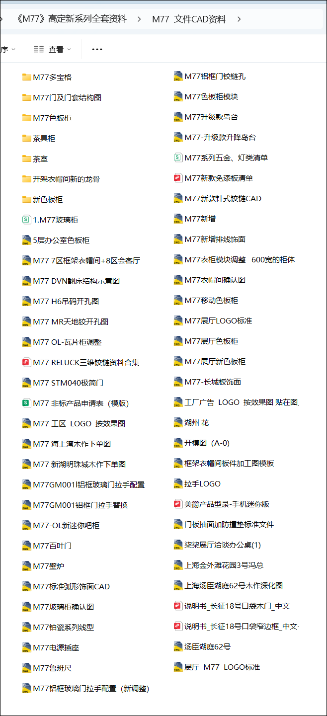 《M77美学木作》高定新系列全套图纸资料打包部分文件夹目录截图