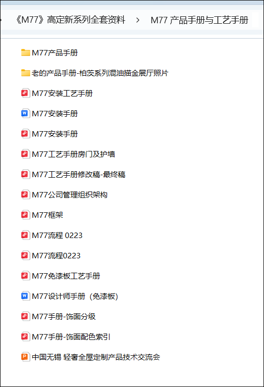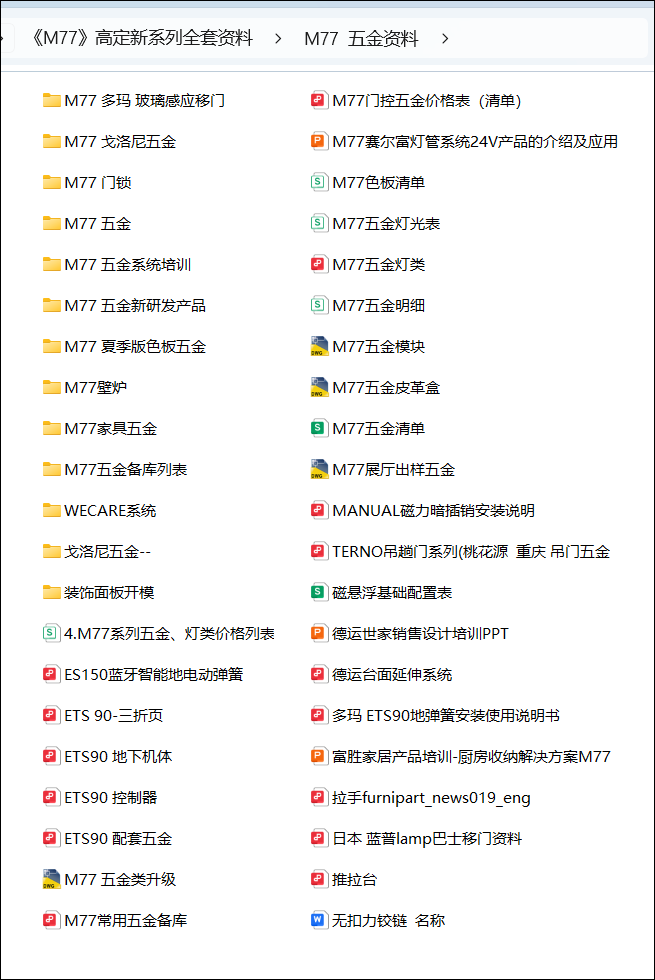 《M77 五金资料》目录截图