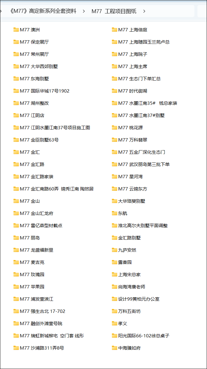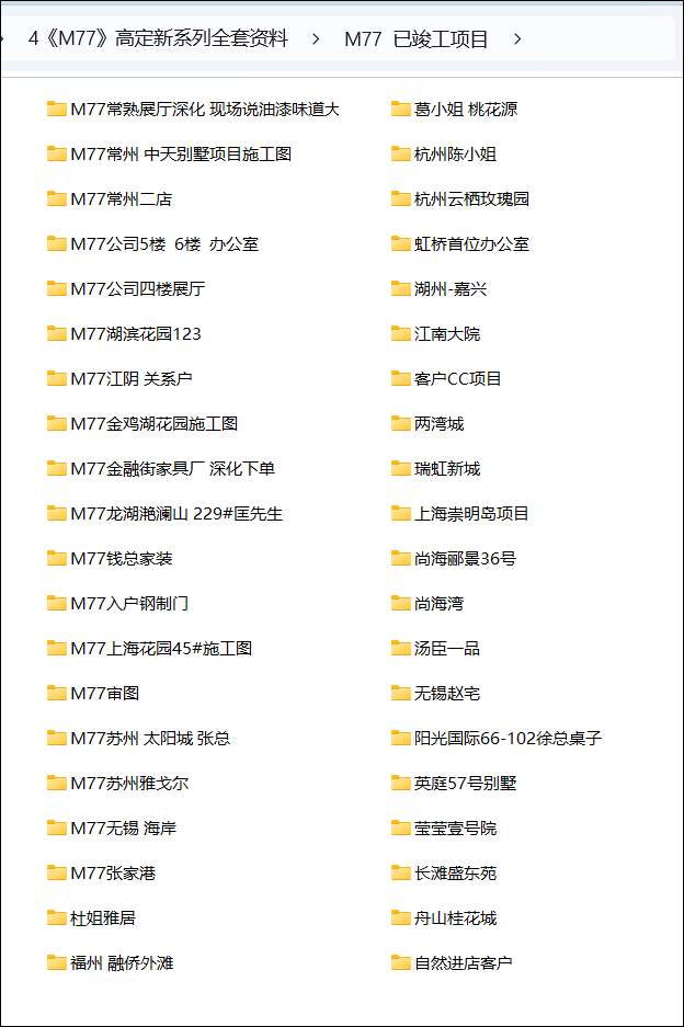 《M77 已竣工项目》目录截图