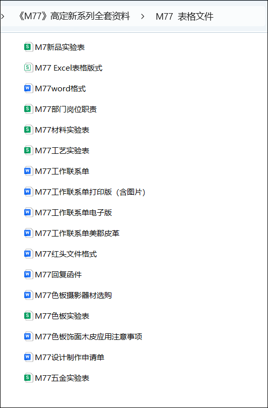 《M77 表格文件》目录截图