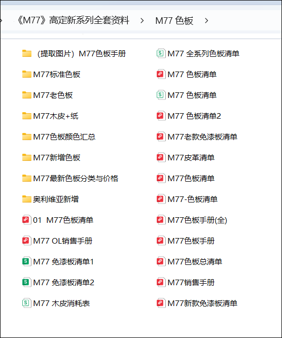 . M77最新色板分类与价格
