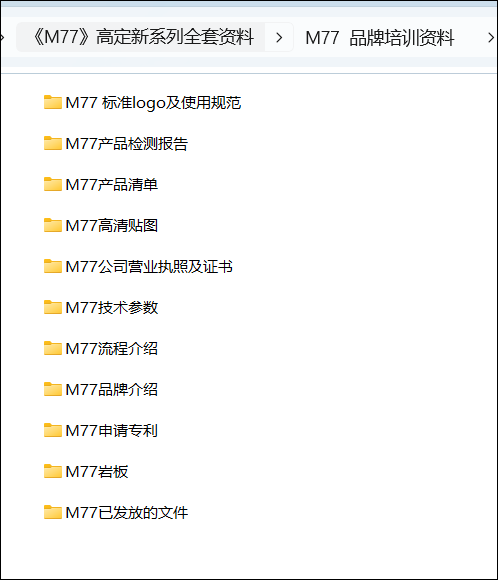 《M77 品牌培训资料》目录截图