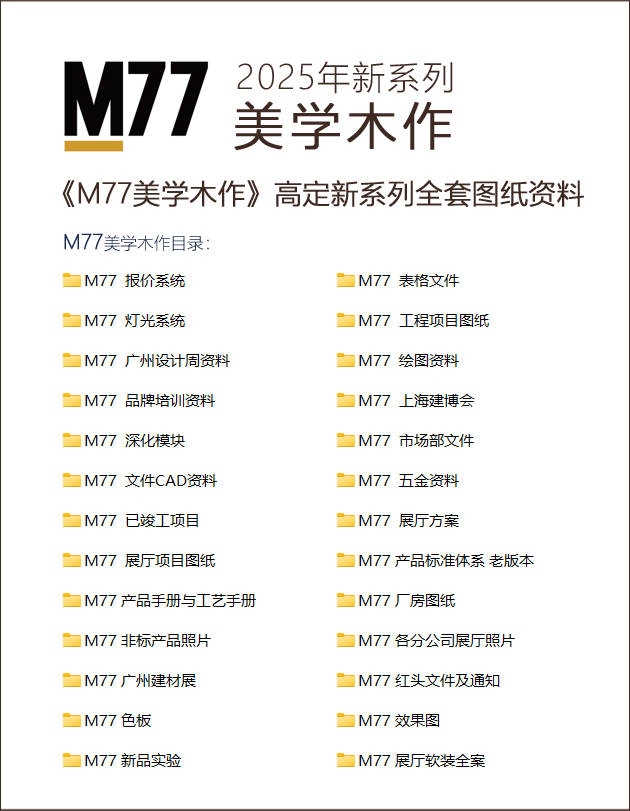 《M77美学木作》高定新系列全套图纸资料 目录如下: