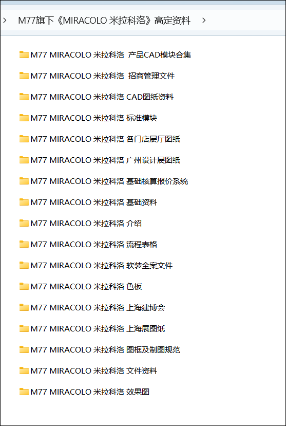 M77旗下《MIRACOLO 米拉科洛》高定图纸资料 部分文件夹目录截图