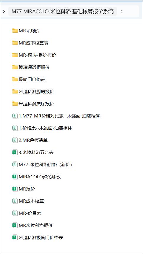 《M77 MIRACOLO 米拉科洛 基础核算报价系统》目录截图