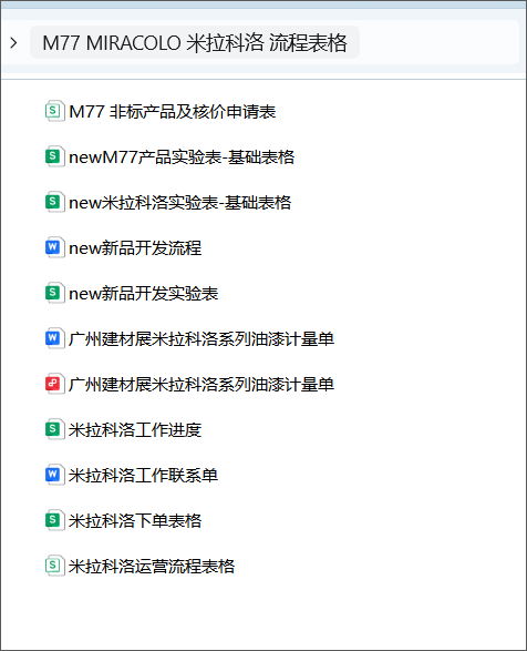 《M77 MIRACOLO 米拉科洛 流程表格》目录截图