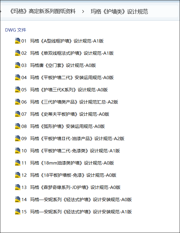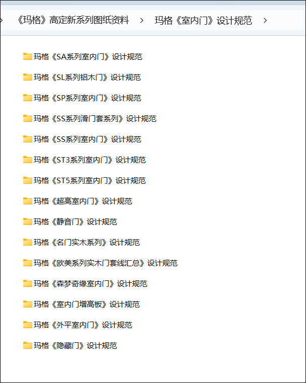《玛格》高定新系列图纸资料 部分文件夹目录截图