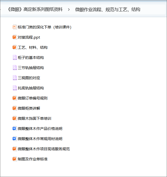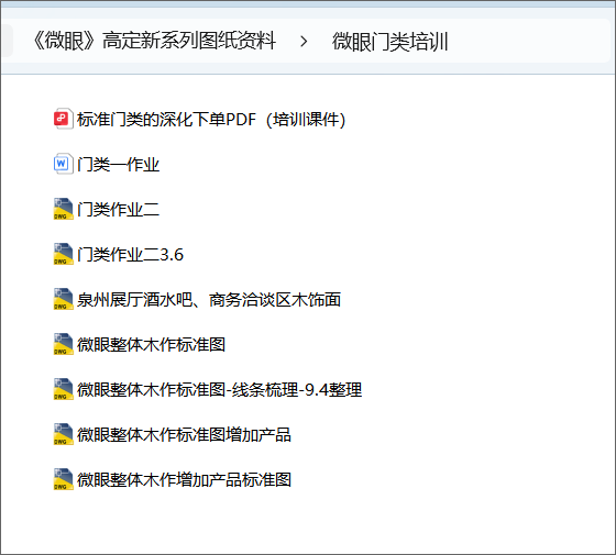 《微眼整体木作》高定新系列图纸资料 部分文件夹目录截图