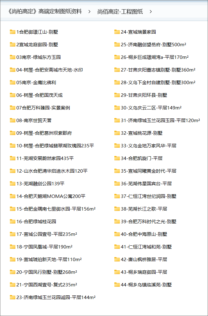 《尚柏高定》高端定制图纸资料 部分文件夹目录截图