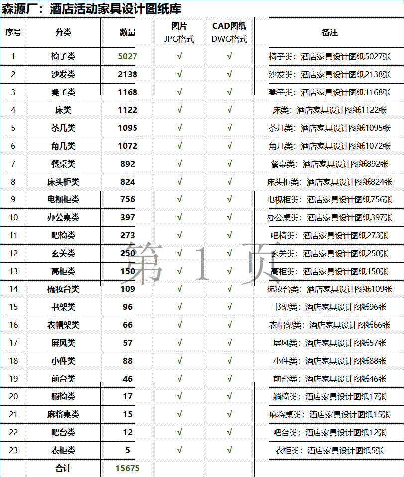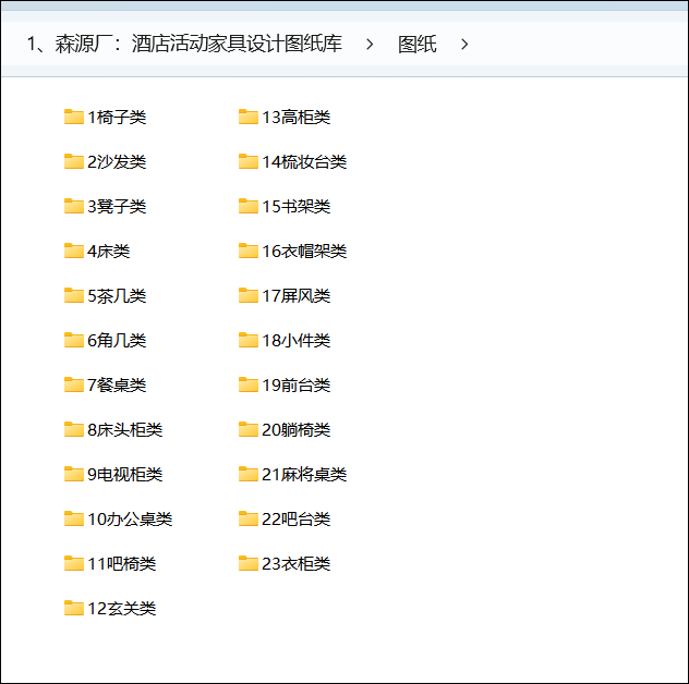 23大分类:《森源厂》酒店活动家具设计图纸库 资料截图