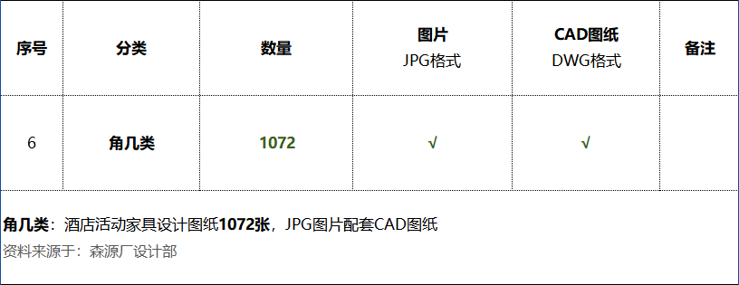 角几类:酒店家具设计图纸1072张