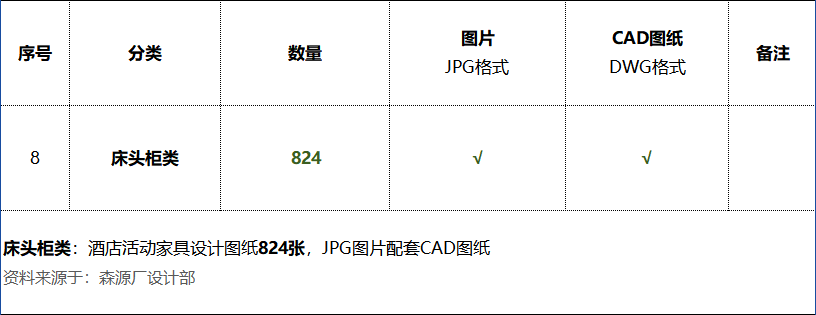 《床头柜类:酒店活动家具设计图纸824张》,图片配套CAD图纸